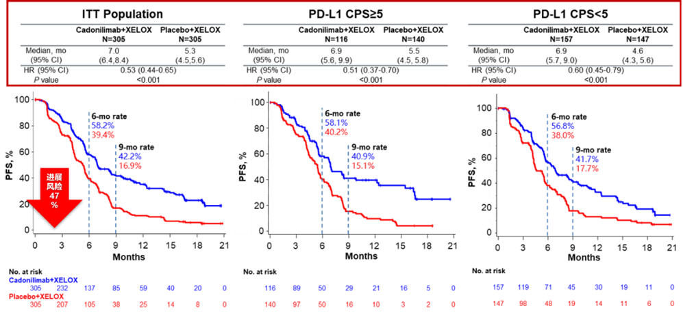 在浙江大学附属邵逸夫医院潘宏铭教授的主持下,北京大学肿瘤医院张小田教授解读了COMPASSION-15研究数据。COMPASSION-15研究是一项随机、双盲、III期研究,旨在探索卡度尼利单抗联合化疗对比化疗一线治疗不可切除的局晚期或转移性胃或胃食管结合部腺癌的疗效和安全性。研究结果显示,无论患者的PD-L1表达,卡度尼利单抗联合化疗较单纯化疗均显著改善了OS与PFS,且未观察到新的安全性信号。该研究为晚期胃或胃食管结合部腺癌患者,特别是PD-L1低表达患者,给予了新的潜在标准治疗方案。