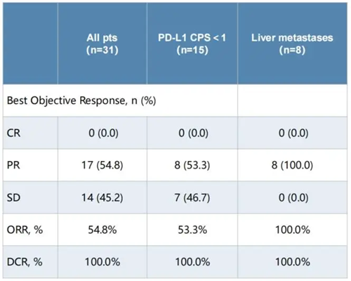 卡度尼利单抗联合化疗在PD-L1 CPS≤5的转移性G/GEJA患者的一线治疗中显示出良好的疗效和可控的安全性,尤其是对肝转移患者的ORR较高。